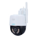 Caméra PTZ extérieure Wi‑Fi au design compact, résolution 3 Mpx (2304 × 1296 @ 20 fps), capteur 1/2,8″ CMOS. Compatible compression Ultra 265, H.265, H.264. Résistance à la lumière faible : 0,005 lux en couleur, vision nocturne jusqu’à 30 m en IR et LED blanc jusque 10 m. Matériau frontal en graphène pour meilleure dissipation thermique