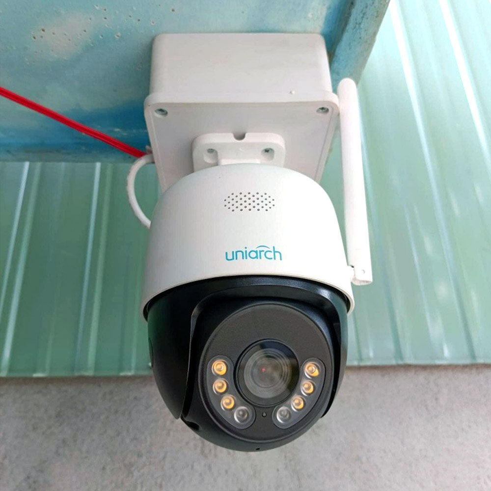 Rotation Pan de 355°, tilt 90°, suivi Auto-Tracking, 20 préréglages PTZ. Objectif 4 mm F1.6, zoom numérique 4×, champ de vision horizontal 90,5°