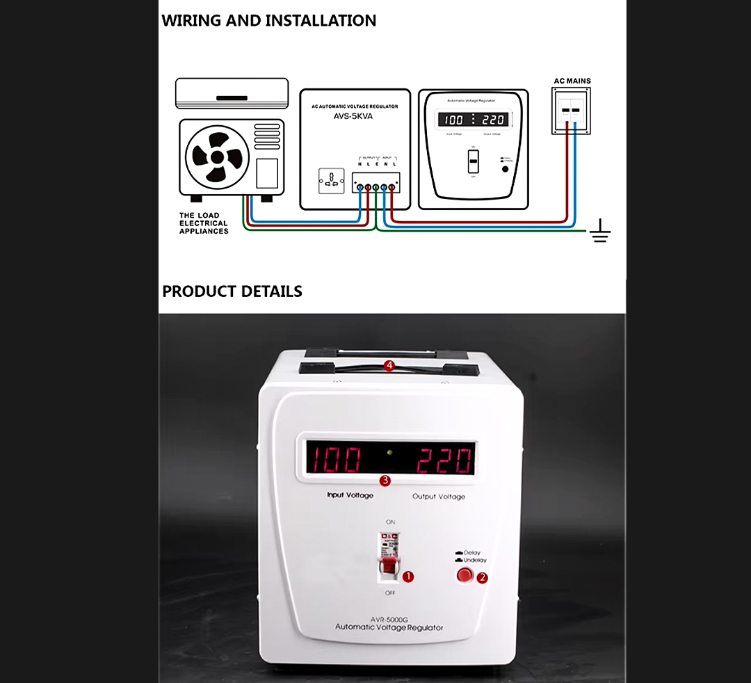Affichage : Écran digital LED (tension d’entrée & sortie)