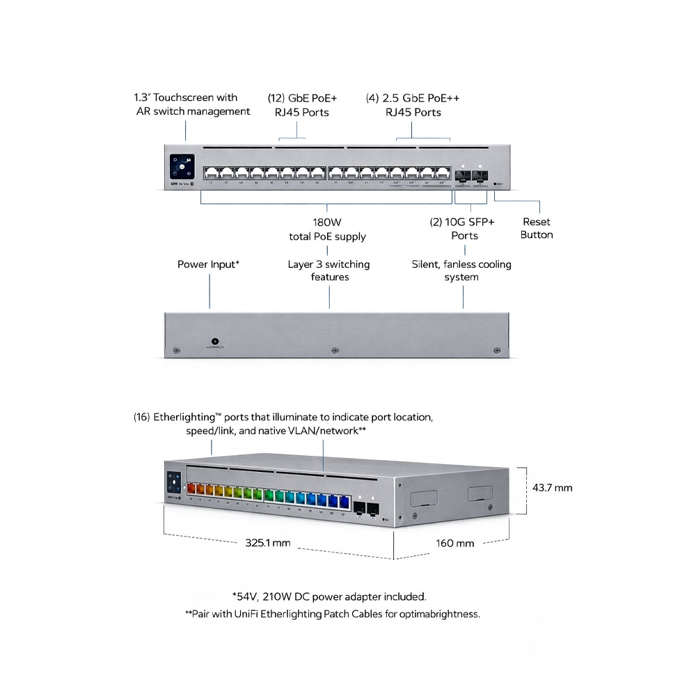 16 ports RJ45 Multi-Gigabit (2.5 GbE)